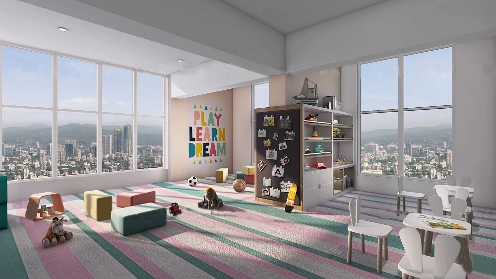 Indoor amenities at Kolte Patil Serenova, Versova include a fully equipped gymnasium, multipurpose hall, and indoor games area, ensuring wellness and recreation are always within reach. Special lifestyle zones such as the yoga deck and stargazing deck add a unique dimension of relaxation and serenity, making this project by Kolte Patil in Versova a true blend of coastal charm and urban modernity.